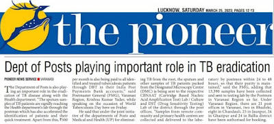 Department of Posts is also playing an important role in the eradication of TB disease along with the Health Department. The sputum samples of TB patients are rapidly reaching the Health Department's lab through the Postman which has also accelerated the identification of patients and their quick treatment. Apart from this, Rs. 500/- per month is also being paid to all identified and treated tuberculosis patients through DBT in their India Post Payments Bank accounts.